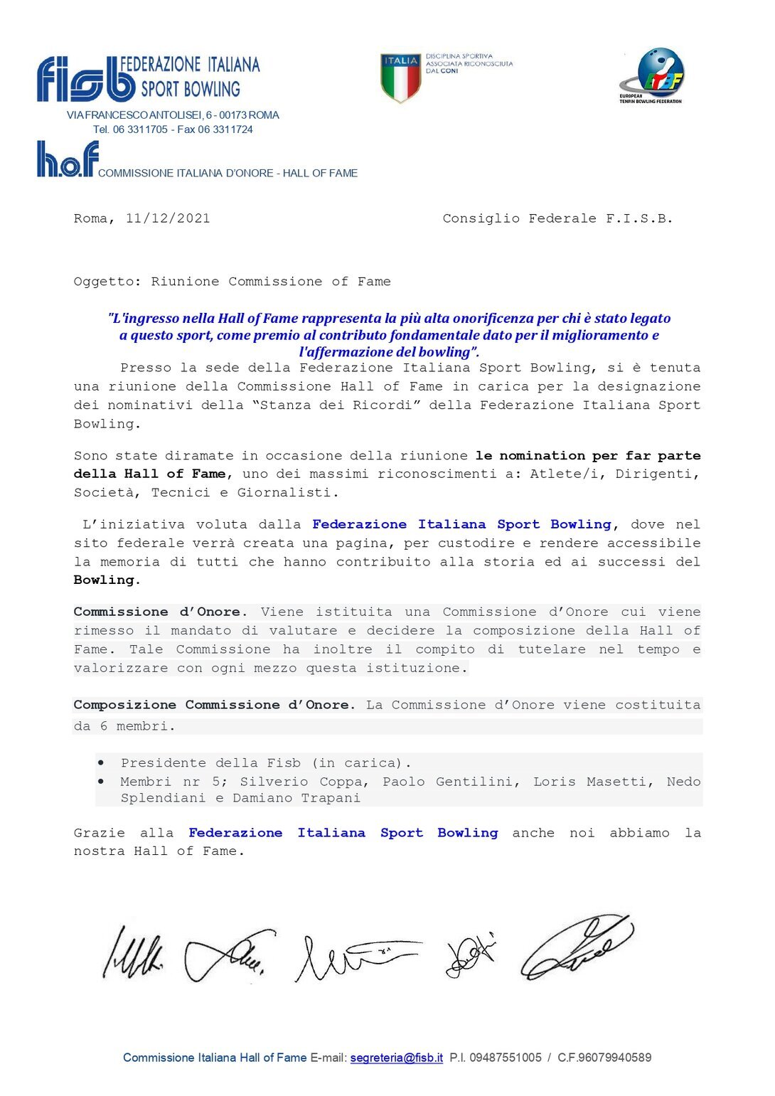 Verbali - FISB-HOF